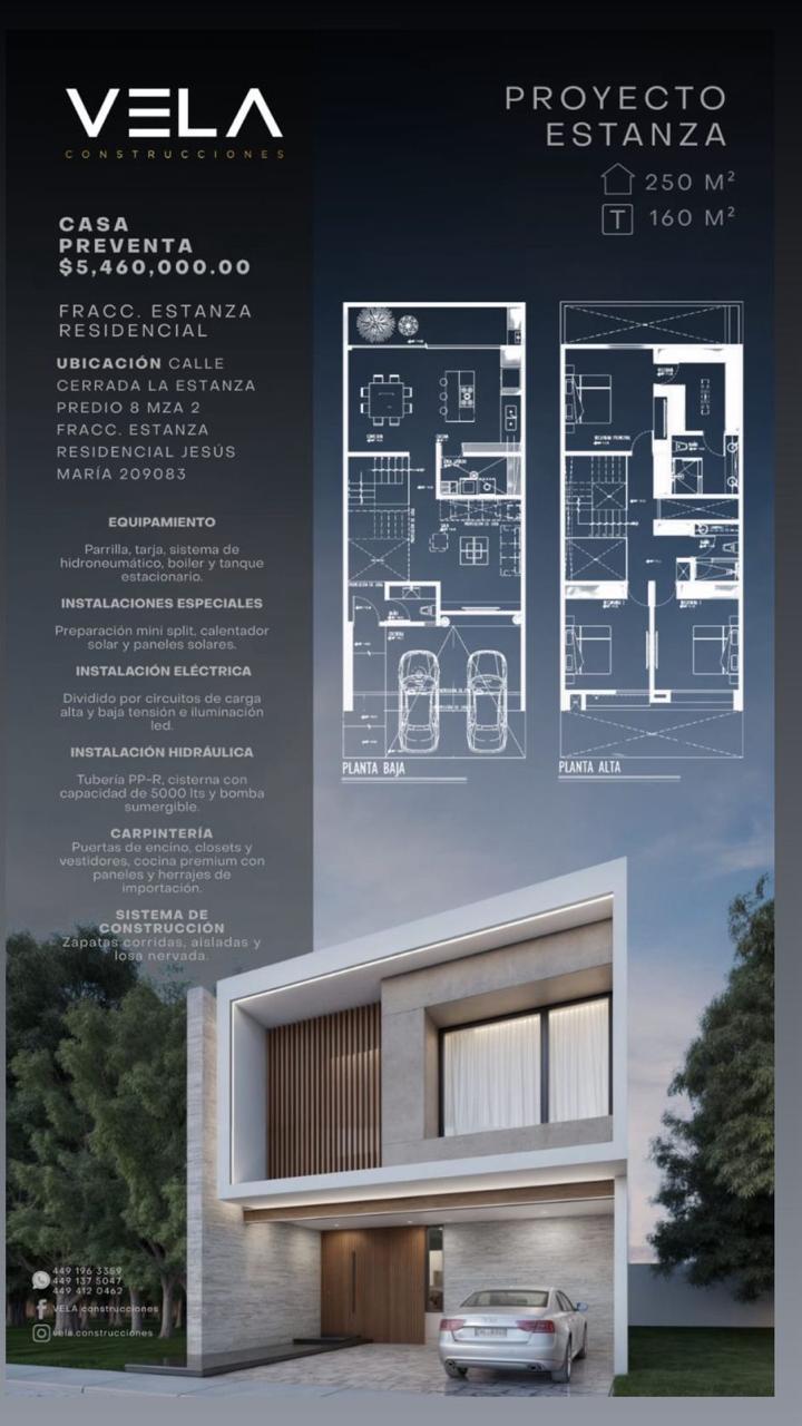 Dentro del equipamiento con el que cuenta la casa, encontramos sistema hidroneumático, boiler y tanque estacionario, preparación para mini split, calentador solar y paneles solares; iluminación led, Tubería PP-R, cisterna con capacidad de 5,000 litros y bomba sumergible. Las puertas, closets y vestidores de encino.